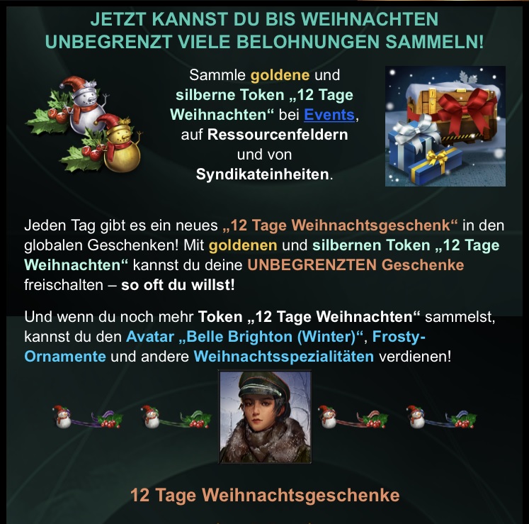 Aus diesem Grunde ist ein Adventskalender in das Spiel integriert worden.