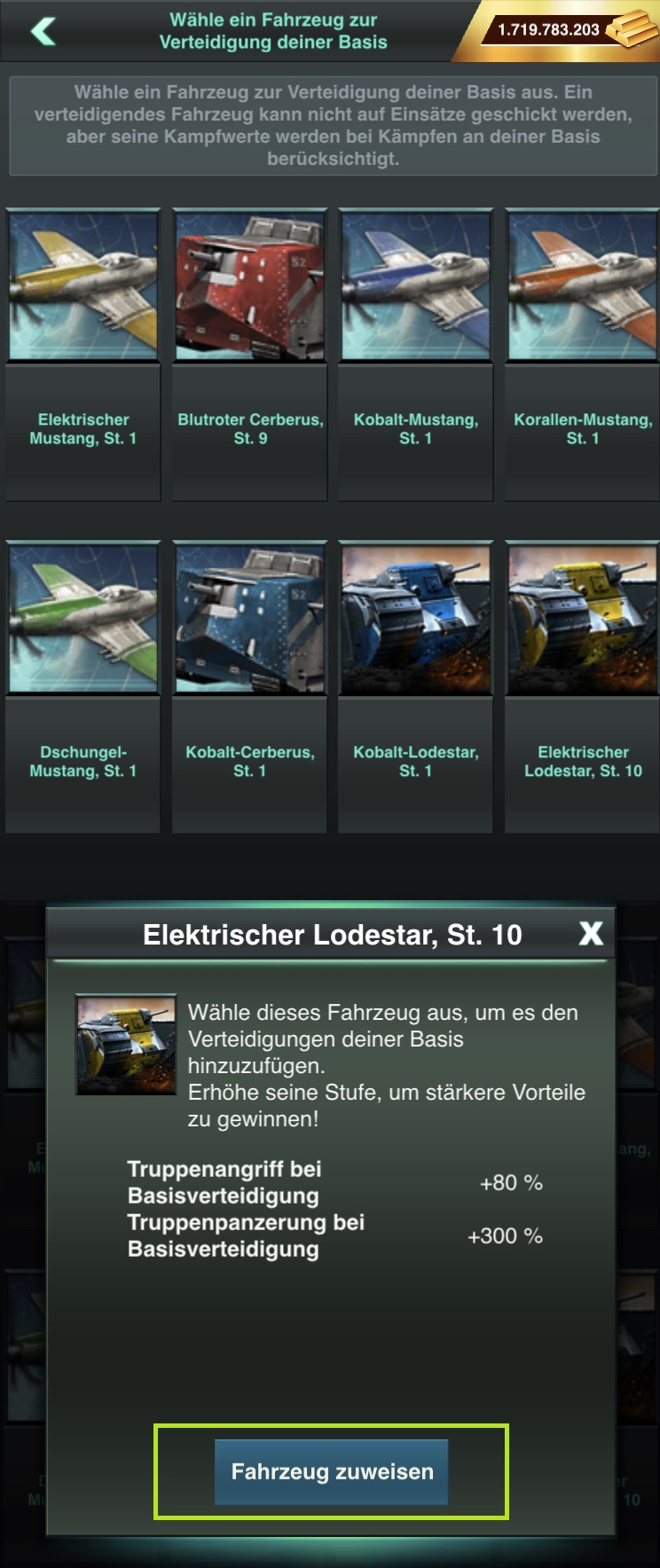 Der erste Platz kann ohne weiteres durch den Einsatz von 50.000 T1-Treibstoff freigeschaltet werden. Danach kann man ein Fahrzeug aus seinem Fuhrpark zuweisen. Man sollte natürlich jenes auswählen, welches den meisten Nutzen für die Verteidigung hat.